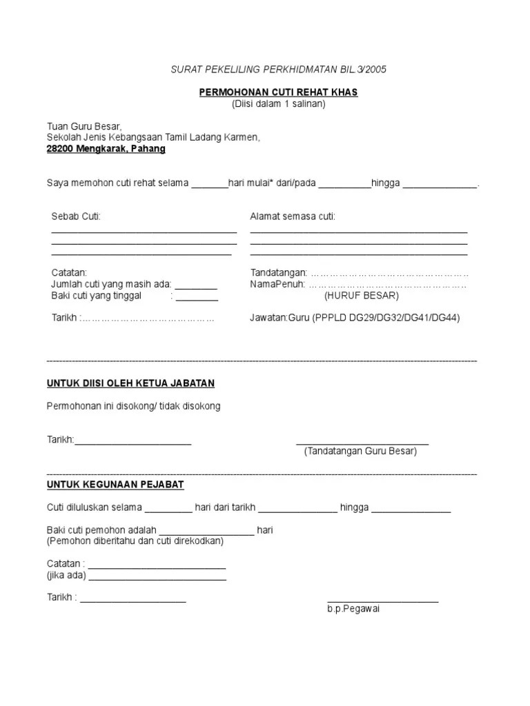 Savesave borang cuti rehat khas guru for later. Pihak yang meluluskan hendaklah memastikan. Surat berkaitan dengan cuti berganti via longkaiboyz.blogspot.my. Unduh sebagai xls, pdf, txt. Laman web rasmi jkr negeri pulau pinang via ppinang.jkr.gov.my.