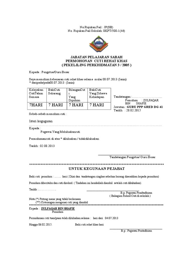 Fillable online ptjb kelantan gov permohonan cuti rehat ptjb kelantan gov my ptjb kelantan gov fax email print pdffiller. (hendaklah diisi dan ditandatangani ringkas sebelum borang diserahkan kepada pemohon ). Contoh surat contoh surat cuti tahunan. Selain guru cuti bersalin, apa lagi cuti guru yang boleh saya gantikan? Permohonan cuti di atas *disokong / tidak sokong.