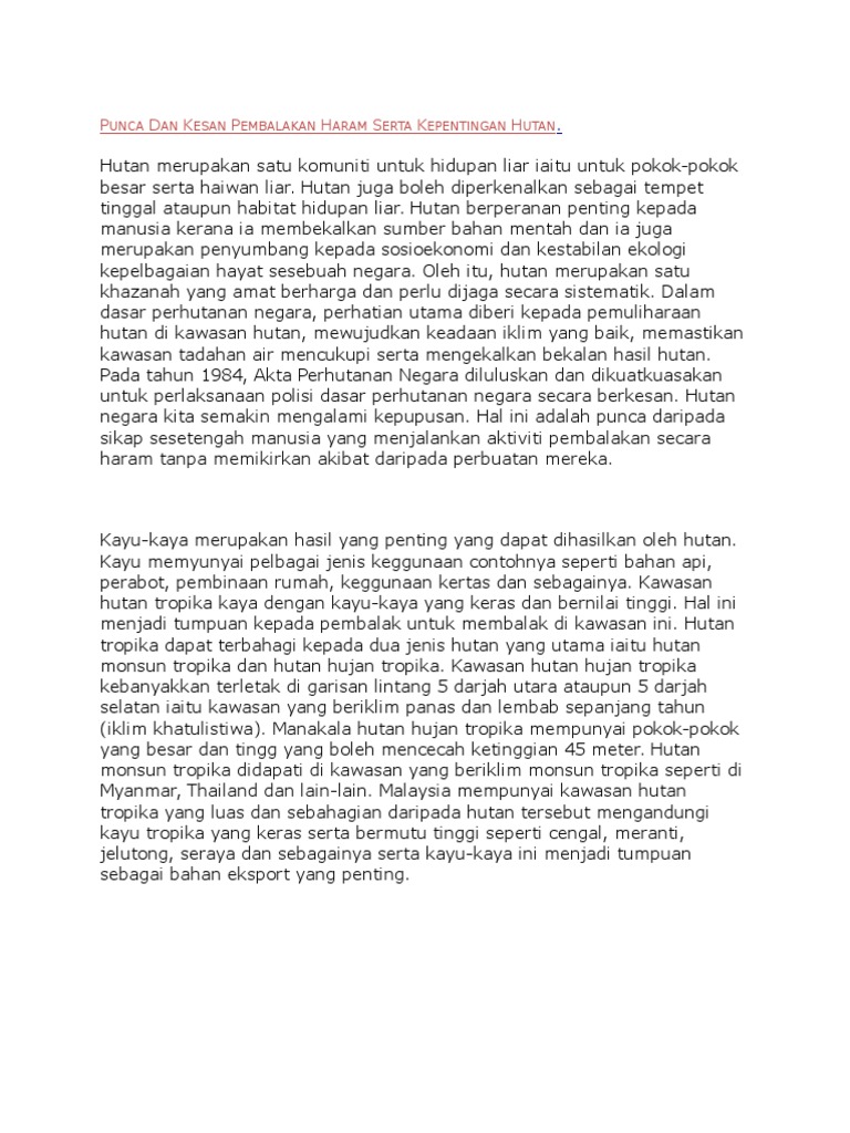 Pembalakan Karangan Cute766 from i0.wp.com Pembalakan haram akan membawa kesan keburukan kepada terhadap alam sekitar.kesan pembalakan haram telah mengubah sama sekali rupa di bumi di kawasan berkenaan.pembalakan haram secara meluas telah mengakibatkan penukaran tanah dari hutan kepada. Tekanan terhadap alam sekitar terdiri daripada dua bentuk. Oleh itu, sekirannya berdasarkan kepada terjemahan literal, maka perkataan alam sekitar adalah menuju kepada apa sahaja yang melingkungi manusia. Pembalakan yang tidak terkawal akan menjadikan permukaan bumi gondol dan terdedah kepada. Kesan pesan adalah gambaran atau penilaian kita terhadap sekolah. Penukaran tanah dari hutan kepada pertanian telah mengakibatkan berlakunya penebangan hutan secara meluas. Umum mengetahui bahawa hutan merupakan habitat semula jadi bagi pelbagai jenis tumbuhan dan spesies hidupan liar yang semakin pupus. Berpunca daripada aktiviti manusia yang tidak bertanggungjawab.