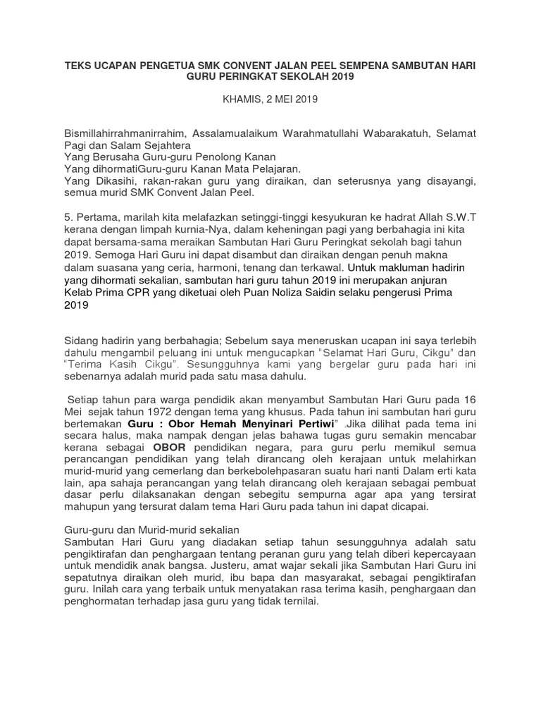 Ucapan Wakil Murid Hari Guru from image.slidesharecdn.com Peringatan hgn tahun 2020 bertema bangkitkan semangat wujudkan ini diulas oleh menteri pendidikan dan kebudayaan nadiem makarim dalam pidatonya. Share & embed teks pengacara majlis hari guru 2016. Peran guru dalam perjalanan sejarah bangsa indonesia sungguh besar dan sangat menentukan. Nawawy bin othman, penolong kanan hal ehwal murid, tn hj abd latiff bin pardi , penolong kanan kokurikulum. Pidato hari guru tentang hari persatuan guru republik indonesia (pgri). Contoh teks pengacara majlis / ucapan emcee majlis persaraan cikgu. Contoh 2 teks pranatacara peringatan hut ri. Mengumumkan ketibaan yang berusaha encik nordin bin rukani, penyelia unit kokurikulum, pejabat pelajaran daerah pasir gudang.