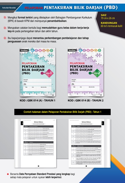 Pentaksiran bilik darjah (pbd) 2011 lp (perekodan ps secara online) tahun 1 dan tingkatan 1 (2012) 2014. Templete pelaporan bilik darjah tahun 5 2021. Pbd (pentaksiran bilik darjah) ialah sebahagian daripada komponen dalam pentaksiran berasaskan sekolah (pbs). Pentaksiran bilik darjah (pbd) adalah sebahagian daripada komponen didalam pentaksiran berasaskan sekolah (pbs). Pbd (pentaksiran bilik darjah) dilaksanakan secara formatif dan sumatif dengan pelbagai pendekatan dan kaedah bagi mengenal pasti perkembangan pembelajaran murid dengan lebih efektif dan secara keseluruhan.